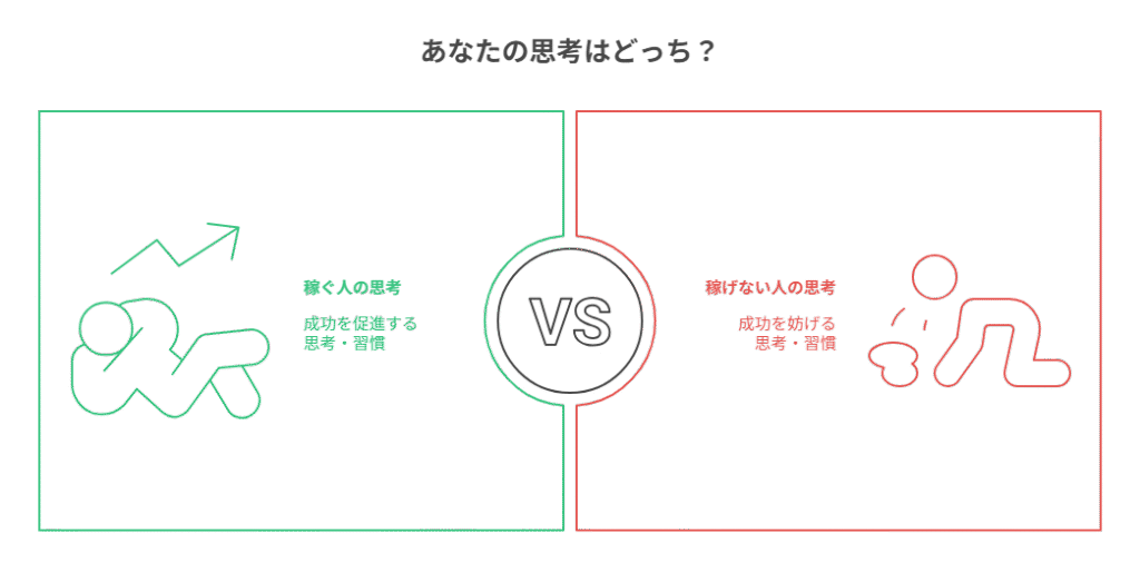 今日からできる小さな一歩として、自分の思考パターンを客観的に見直し、「この選択は稼ぐ人ならどうするか?」と問いかけてみてください。
