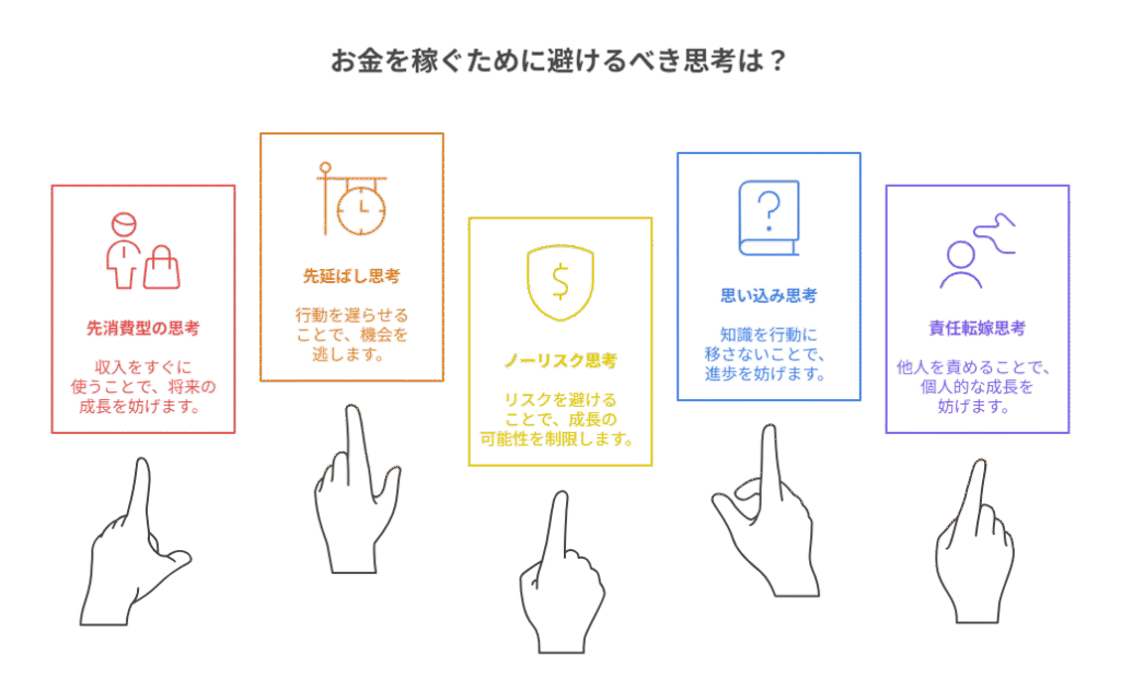 本記事では、お金を稼ぐ人が絶対にやらない5つの思考パターンと、それに代わる効果的な習慣を具体的に解説します。