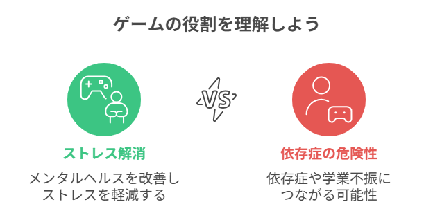 一方で、近年の研究や実体験から「ゲームはむしろストレスを和らげる効果がある」という点が注目されています。