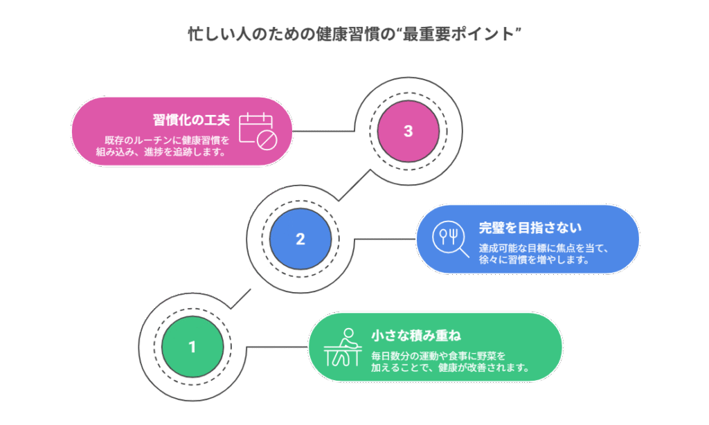 多忙な生活の中で健康習慣を続けるための最重要ポイントは、