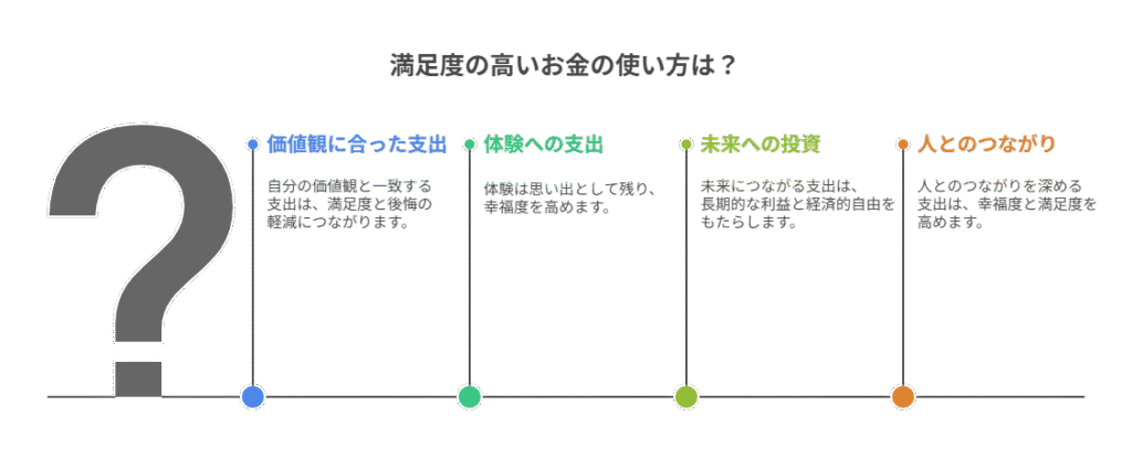 逆に、同じ金額を「スキルアップ」「人とのつながり」「新しい経験」に使った場合は、満足感が長続きします。