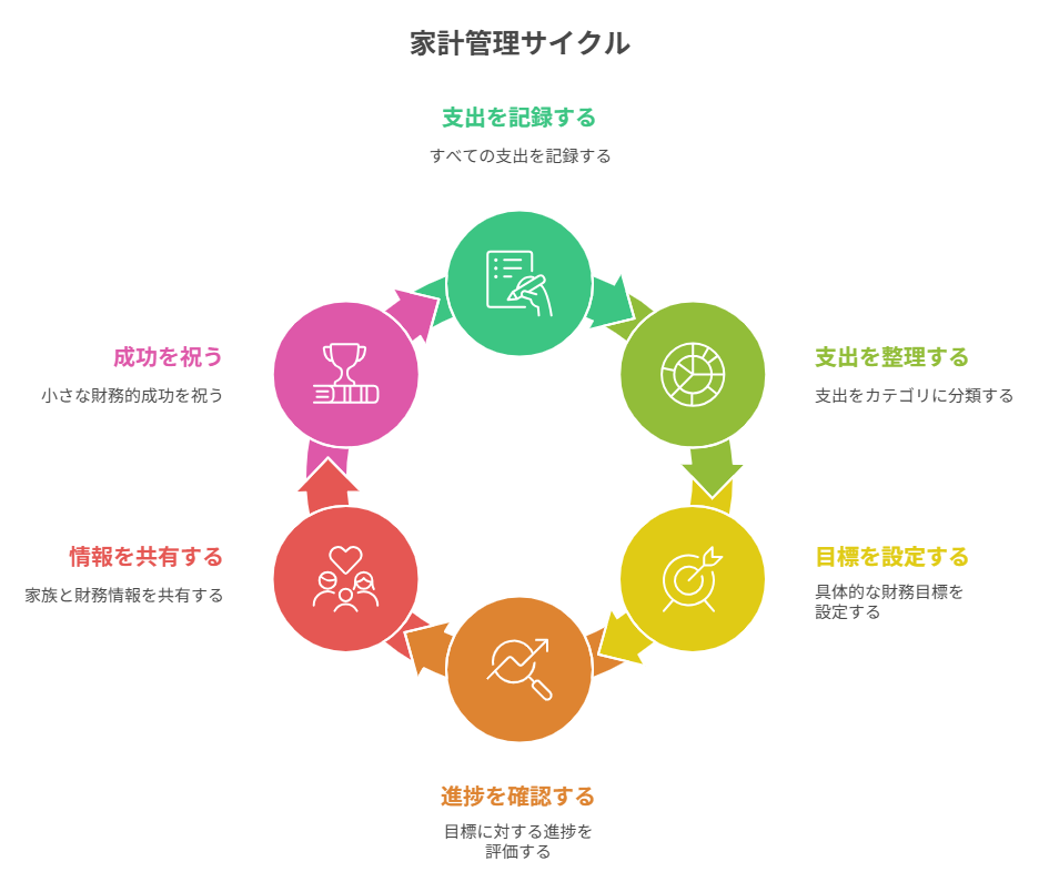 全ての収入と支出を記録し、カテゴリ別に整理して目標を設定することで、無理なく家計管理が続けられます。