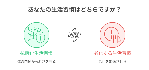つまり、「抗酸化=若さを保つ」には、毎日の習慣を見直すことが欠かせません。
