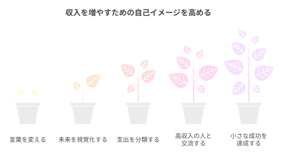 では、「お金の自己イメージ」を高めて、収入アップにつなげるための具体的な5つの方法を、実践しやすい形で詳しく解説します。