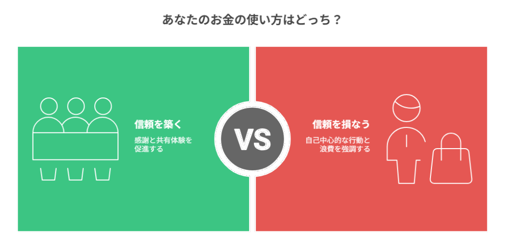 - 浪費的なお金の使い方 ➡ 一時的に盛り上がるが、信用を失いやすい