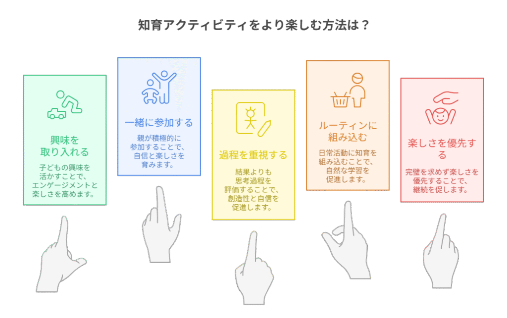 知育アクティビティは、親が教えるのではなく「一緒に楽しむ」ことが成功の秘訣です。