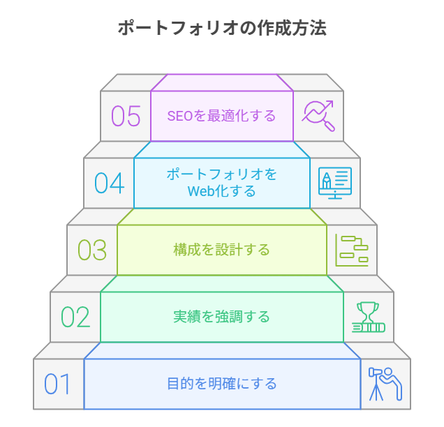ここからは、営業しなくても“仕事が来る”ポートフォリオの作り方を、初心者でも取り組みやすい手順で解説します。