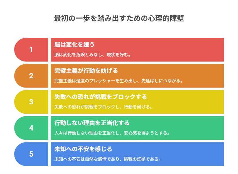 では、人が最初の一歩を踏み出せない理由には、どんな心理的ハードルがあるのでしょうか。
