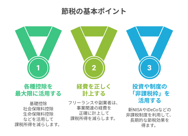 ここでは、個人でもすぐに活用できる節税の3つの基本ポイントを紹介します。