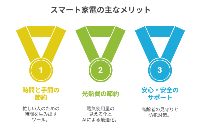このように、スマート家電は単なる便利グッズではなく、「時間・お金・安心感」を支えてくれる存在。