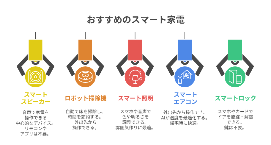 ここからは、実際に導入するだけで生活がぐっと快適になる「おすすめのスマート家電」を紹介します。