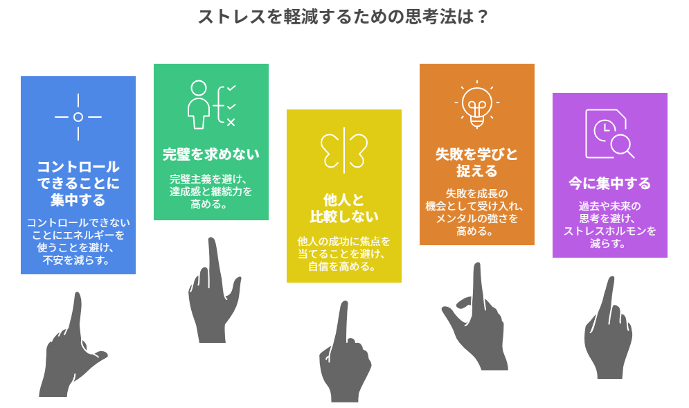 この5つの思考法を意識するだけで、ストレスは確実に減っていきます。