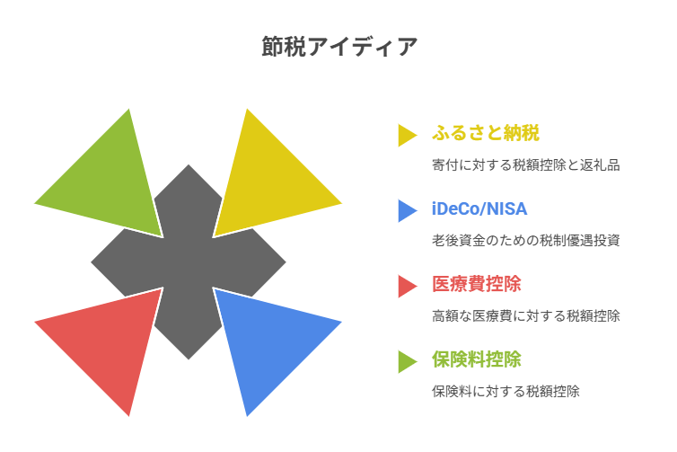 節税は「税金を不当に減らす」ことではなく、認められた制度を正しく活用して無駄な税負担を減らすことです。以下の方法が代表的です。