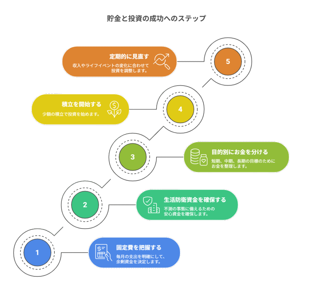 まず「貯金の土台」を作ってから投資へ進むことが重要。