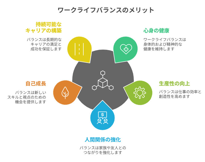 一方、適度に休息や趣味の時間を持つことで、心身の回復が促され、仕事のパフォーマンスも長期的に維持できます。