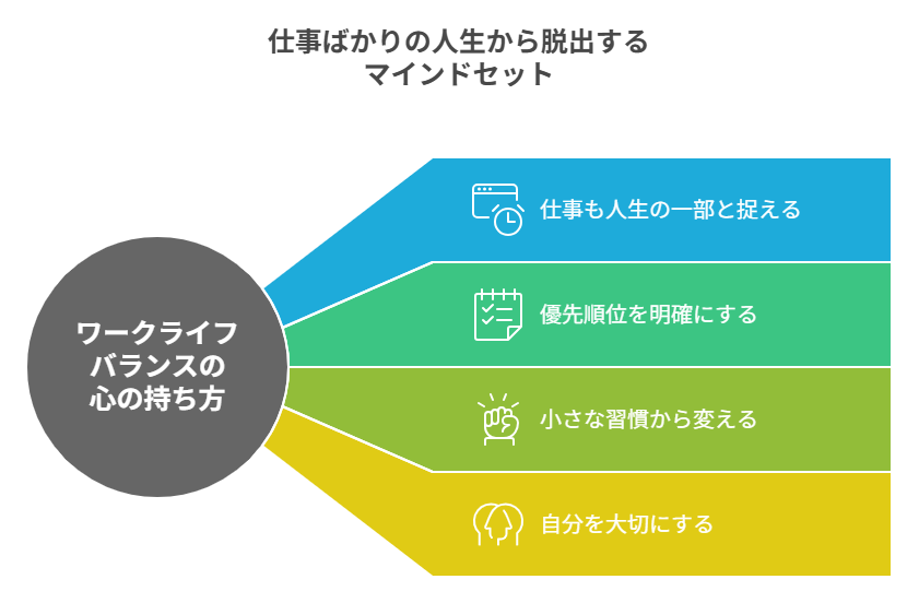 ポイントは「仕事を減らして休むこと」ではなく、 自分の価値観に基づいて“仕事”と“生活”の優先順位を調整し、持続可能な働き方を見つけること です。