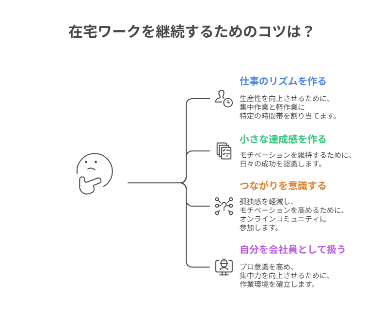 自宅にいても、心構えは「個人事業主」や「プロ意識」を持つことが重要です。